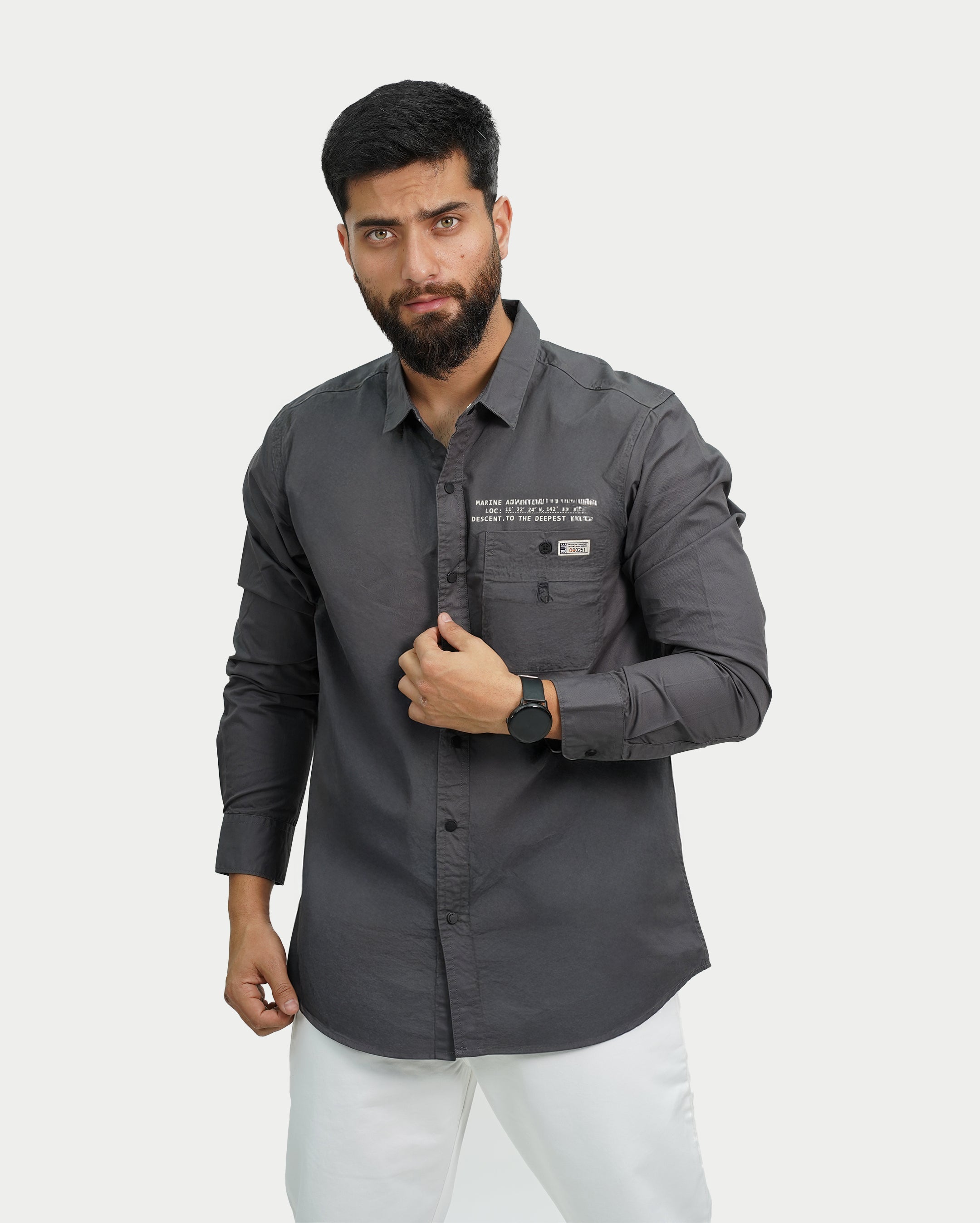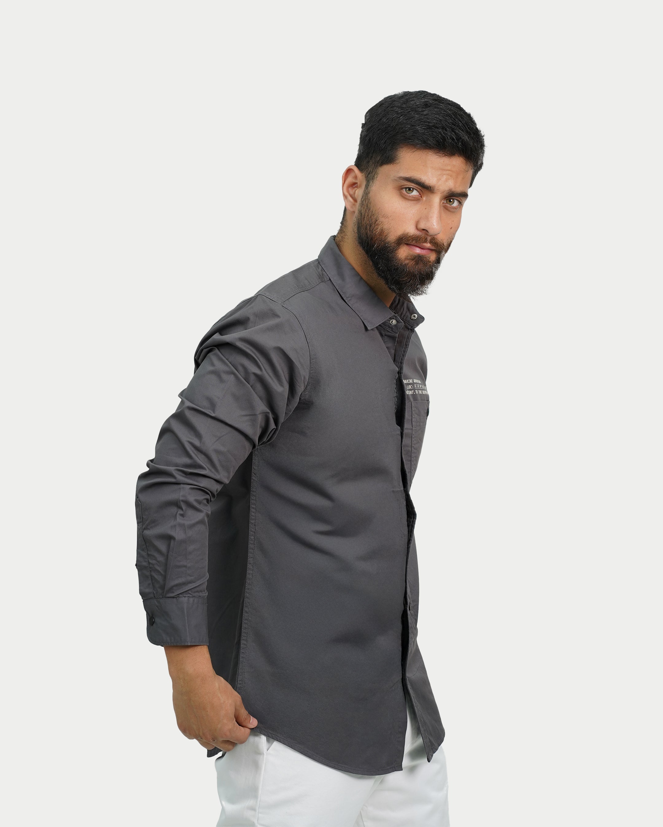 Grey Solid Twill Shirt