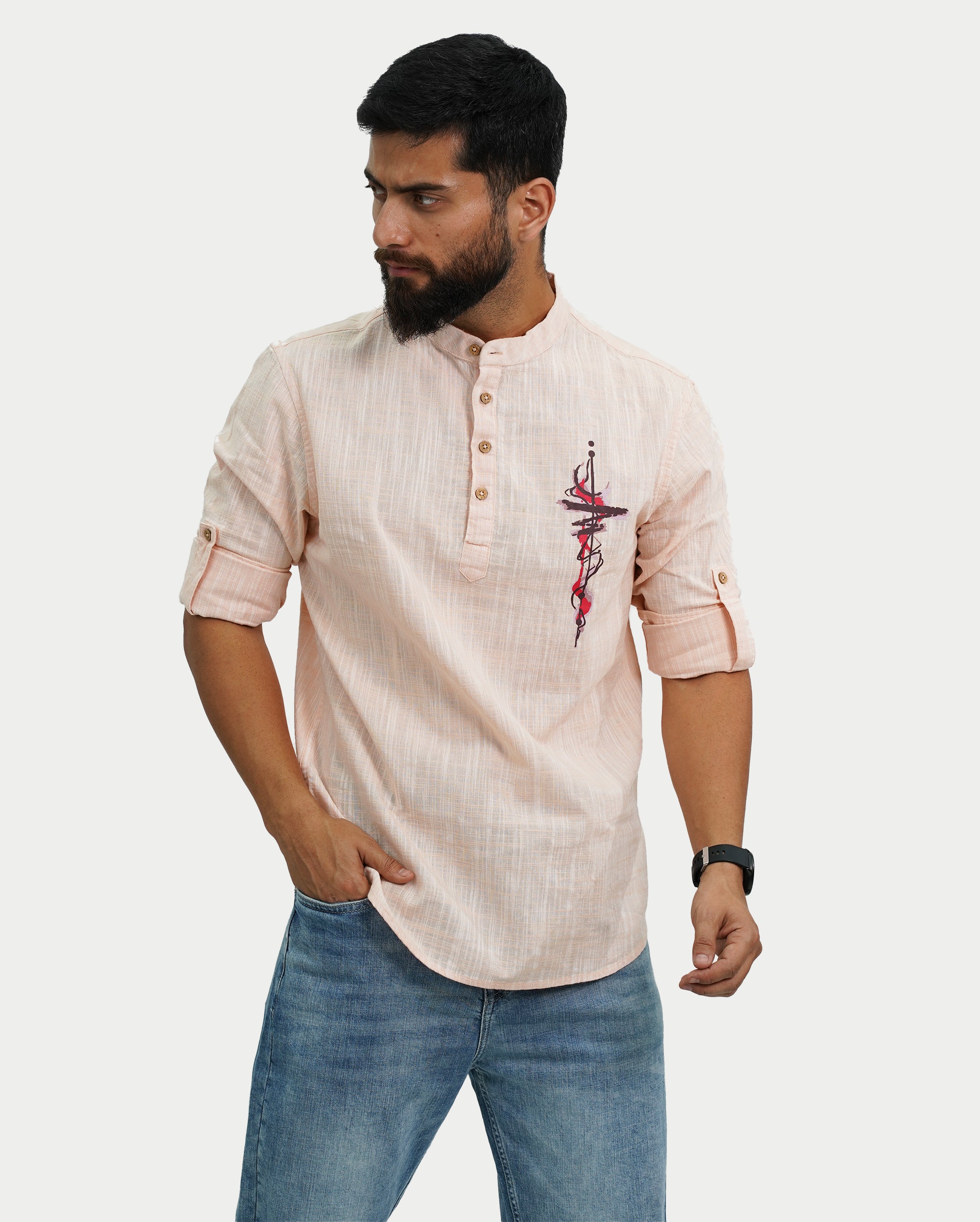 Refresh your wardrobe with this light-shade textured kurta, designed for a clean and effortless look. Made from a premium Cotton Slub, it offers all-day comfort with a soft feel and breathable finish. The subtle self-textured pattern adds a refined touch, while the mandarin collar gives it a modern, minimal appeal. Pair it with jeans for a relaxed everyday look or style it with trousers for a smart, polished outfit.